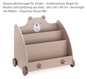 Navaris Bücherregal für Kinder - Kinderzimmer Regal für Bücher und Spielzeug aus Holz - 60 x 51 x 40 cm - Buchregal mit Rollen