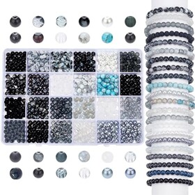 PH PandaHall 768 Stück 6 mm Runde Glasperlen zum Auffädeln, 24 Stil Schwarz Weiß Armband Perlen Marmor Lose Perlen Abstandsperl