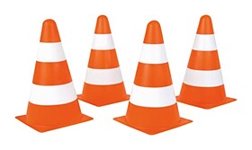 Lena 61249 Pylonen 4er Set, Verkehrshütchen Spielset mit 4 Pylonen, Warnkegel je 22 cm, Verkehrskegel Orange und Weiß, Warnleit