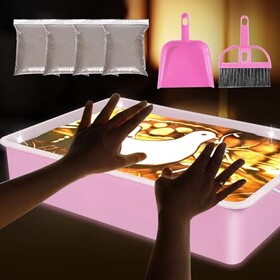 Bocguy Sandmalerei Lichtkasten für Kinder, Sandbilder mit 4 Packungen NatursandSand und Reinigungswerkzeuge, Dynamische Sandbil
