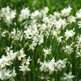 Die spät blühende 'Thalia' überzeugt mit eleganten, weißen, gut duftenden Blüten. Sie hat eine unter den Engelstränen-Narzissen bemerkenswert gute Winterhärte. Mehrblütige Engelstränen-Narzissen der Sorte „Thalia“ besitzen cremeweiße, kleine Blütenblätter und eine gleichfarbige, kurze Krone. 20 Zwiebeln