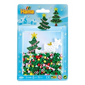 Hama Perlen 4108 Kleines Set Weihnachtsbaum mit ca. 450 bunten Midi Bügelperlen mit Durchmesser 5 mm, Stiftplatte und Motivvorl