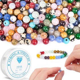 RUBY 120 Stück 6mm Bunte Naturstein Perlen Rund, Edelsteinperlen zum Auffädeln für Armbänder Selber Machen mit Elastischem Schm