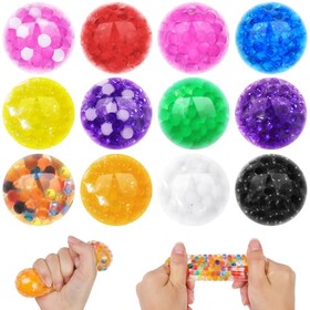 Ainiv 12 Stück Anti Stress Spielzeug Set Mesh Stressbälle Squishy Balls mit Wasser Perle Stressball zum Kneten Knetball für Hän