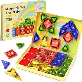 Magnetische Fliesen Reisespielzeug für Kinder ab 3+ Jahren, 40-teiliges Mini Magnetfliesen Bausteine Spielzeug, 3D funkelndes R