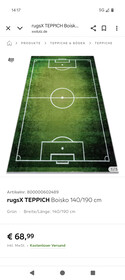 Fußball-Teppich mit rutschfester Unterseite Größe: 1,40 m x 1,90 m