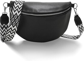Cross body bag in schwarz, gerne aus Leder und mit gemustertem Band (fair trade)
