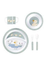 Sterntaler Geschirrset Ente Edda Lou steingrün, 5er Set für Jungen und Mädchen bestehend aus Henkeltasse, Teller, Breischale,je