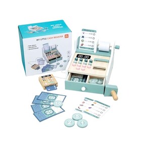 Taschenrechner -Registrierkasse Spielzeug - Holzanzeigemaschine mit interaktiven Tasten | Pädagogische vor, um Spiele Kasse Set