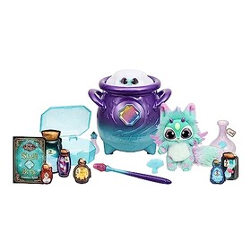 Magic Mixies Magischer Zauberkessel in Lila mit echtem Nebel und interaktivem 20 cm großem, blauem Plüschtier. Wen wirst du her