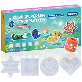Smowo® 10mm Bügelperlen Platten in vielen Formen - Set mit 4 Steckplatten und Vorlagen - Rund, Stern, Viereck, Herz – Große Max