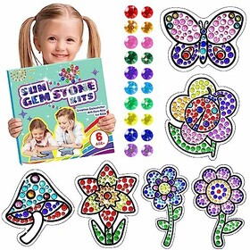 Suncatcher Bastelsets für Kinder, Kunsthandwerk DIY Diamant Spielzeug für Mädchen, 6 Stück Blumen Edelstein Kunst Malerei Sets