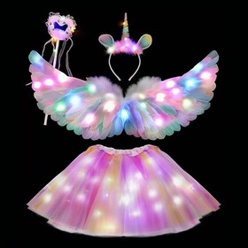23GUANYI Einhorn Kostüm Kinder, Halloween Kostüm Kinder mit Federflügel Einhorn Haarreif Zauberstab Tutu Tüllrock für Halloween