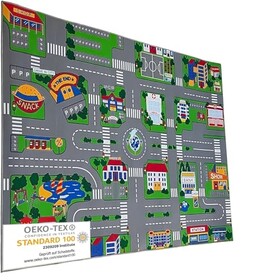 Entrando Spielteppich Straße 100x150 cm - Auto Teppich für Kinderzimmer mit Straßen & Häusern - Rutschfester Kinder Teppich sch