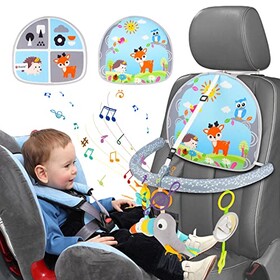 Aceshop Spielzeug Für Autofahrt Baby, Activity-Spielzeug mit Spiegel Verstellbare doppelseitige Rücksitz-Autositz-Hängespielzeu