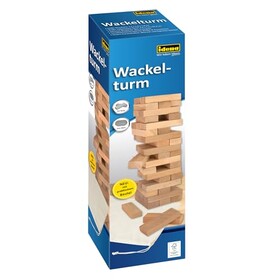Idena - Wackelturm Spiel aus Holz, Geschicklichkeitsspiel mit 54 Bausteinen und Aufbewahrungsbeutel, Geschellschaftsspiel