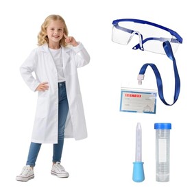 Arztkittel Kinder Laborkittel Weiß Kostüm für Junge Mädchen Labormantel Langarm Medizin mit Schutzbrille Ausweis Reagenzglas fü