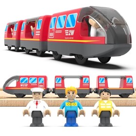 LiRiQi Eisenbahn elektrische lok Holzeisenbahn Zug Kinder, Batteriebetriebener Lokomotivzug, Motorzug kompatibel mit Thomas Bri