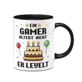 Gaming Tasse - Ein Gamer altert nicht er levelt - Geschenk zum Geburtstag für Zocker - Geburtstagsgeschenk lustig für Jungen, N