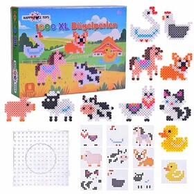 1000 Maxi XL 10mm Bügelperlen Set Bauernhof, 1 Maxi Stiftplatte, 1000 Bunte Bügelperlen, 10 Papiervorlagen, 3x Bügelpapier Krea