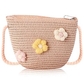 HTTDSLF Mädchentasche Blumen Stroh Tasche, Handtasche Kinder, Mini Strohkreuzbodus Tasche mit Blumen Dekoration, für Täglichen
