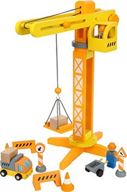 small foot Baukran mit Baustellenzubehör aus Holz, Spiel-Set für Kinder ab 3 Jahren, 12007