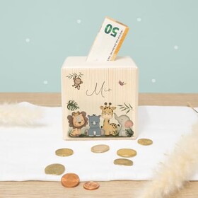 Spardose Personalisiert mit Namen aus Holz - 10x10cm Holzspardose - Geschenk zur Geburt, Geburtstag, Einschulung, Taufe - Spars