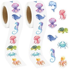 FLEXNOVA 1000 Stück Tier Aufkleber, Runde Sticker Meer Meerestiere Wassertiere Meerestiere Aufkleber Tiersticker Stickerrolle M