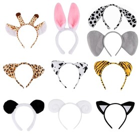YiliYa 10 Stück Tier Haarreif mit Ohren Stirnbänder Tiger Elefant Hund Giraffe Hasen Katze Kostüm Zubehör für Kinder Erwachsene