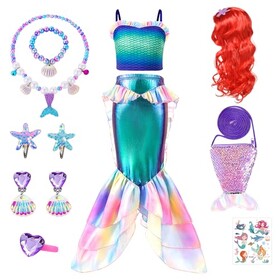 YYDSXK Meerjungfrau Kostüm Mädchen, Prinzessin Arielle Kostüm Kleid mit Ariel Meerjungfrau Perücke, Arielle Kostüm Kinder Gesch