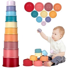 MOYKSRR Montessori Spielzeug, 10 Stück Stapelbecher, Kinder Stapelturm, Sandspielzeug Becher, Motorikspielzeug, Lernspielzeug G