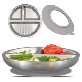 Rilli Edelstahl Saugnapf BLW Teller, rutschfestes Baby Geschirr, Baby Saugnapf Geschirr