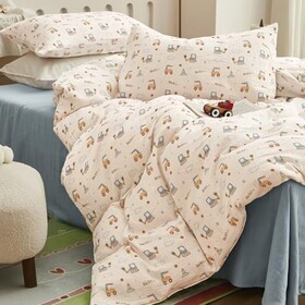AShanlan Kinderbettwäsche 135x200 Baumwolle Musselin Bettwäsche Kinder Jungen 135 x 200 cm + Kissenbezug 80x80 cm Bagger Motiv
