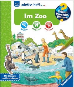 Wieso? Weshalb? Warum? aktiv-Heft - Im Zoo : Mit Stickern und Bastelbogen. Malen, Rätseln, Basteln