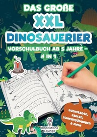 Das große XXL Dinosaurier Vorschulbuch ab 5 Jahre: Lernen mit Spaß: Schwungübungen, Buchstaben, Zahlen, Labyrinthe und mehr – F