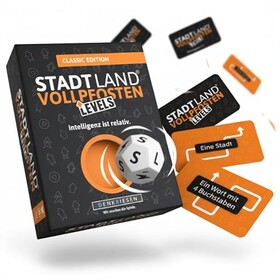 DENKRIESEN - Stadt Land Vollpfosten® Levels – Classic Edition | 60 Spielkarten und Blitzwürfel ab 12 Jahren | ca. 30 min Spielz