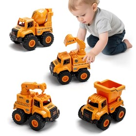 Baufahrzeug Spielzeug ab 1 2 Jahre Jungen & Mädchen – 4 STK. Push-and-Go Auto Set mit Bagger, LKW Kipper, Kran & Betonmischer –
