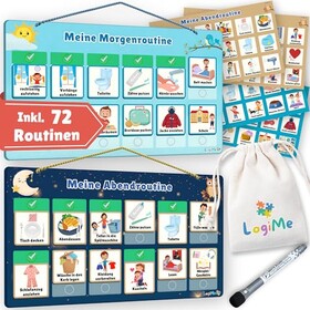 𝐋𝐨𝐠𝐢𝐌𝐞® Morgenroutine und Abendroutine Kinder Plan [inkl. 72 Routinen] Magnetisch – Montessori Tagesplaner - Routine Plan