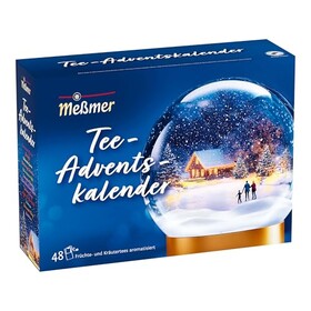 Meßmer Tee-Adventskalender mit 24 Sorten | 48 Beutel Früchtetee & Kräutertee | Stimmungsvolles Design zum Aufstellen | Weihnach