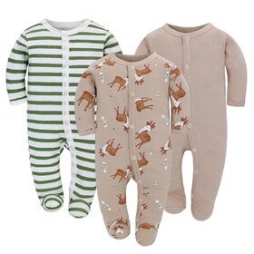3PCS Baby Schlafstrampler Babychlafanzug Babyschlafsack Baumwolle mit Füßen mit knöpfen Gr. 56 62 68 für Junge Mädchen Neugbore