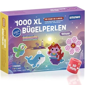 Smowo® Große 10mm Glitzer Bügelperlen 1000 Stück für Kinder ab 3 Jahren - 7 bunte Farben XL Steckperlen - Kreatives Perlenset