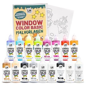 LM Window Color Set - Abziehbare Fenstermalfarbe/Stickerfarbe auf Wasserbasis für glatte Oberflächen wie Glas, Spiegel und Fli