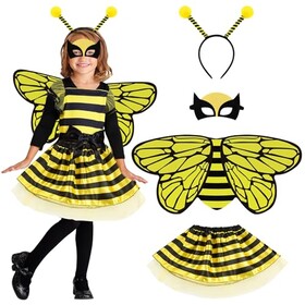 HTTDSLF Hummel Bienen Kostüm für Kinder Mädchen, Bienenkostüm Kinder mit Flügeln Stirnband Streifen Rock für Karneval Halloween