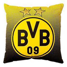 Borussia Dortmund, Polyester , BVB-Kissen mit Emblem, Schwarz / Gelb, 40x40cm, 1 Stück