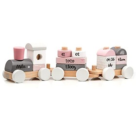 Holz Eisenbahn rosa - personalisierbar I Geschenk zur Geburt Mädchen I Handmade Holzspielzeug mit Steckformen I Personalisierte