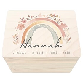 DEL MÀ Unique & Personal Erinnerungskiste Baby Mädchen personalisierte Holzkiste Erinnerungsbox Regenbogen Geschenk zur Geburt