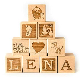 Holzwürfel mit Gravur - Baby Geschenk für Junge/Mädchen - Würfel mit Namen zur Geburt - Buche 4cm