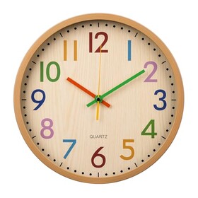 APIELE 12 Zoll Silent Bunte Buchstaben Kinder Wanduhr Modern Holzmaserung Quarz Nicht Zeit Reisen Kein Ticken Wanduhr Kinder Sc