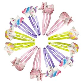 12 Stück Haarspangen für Mädchen und Kinder - Einhorn Haarschmuck, Mehrfarbig Süß und Verspielt - Geschenk für Babys und Teenag
