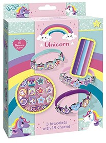 Totum Unicorn Charm-Armbänder Bastel-Set: Gestalte 3-farbige Armbänder mit 18 süßen Einhorn-Charms für Kinder ab 3 Jahren